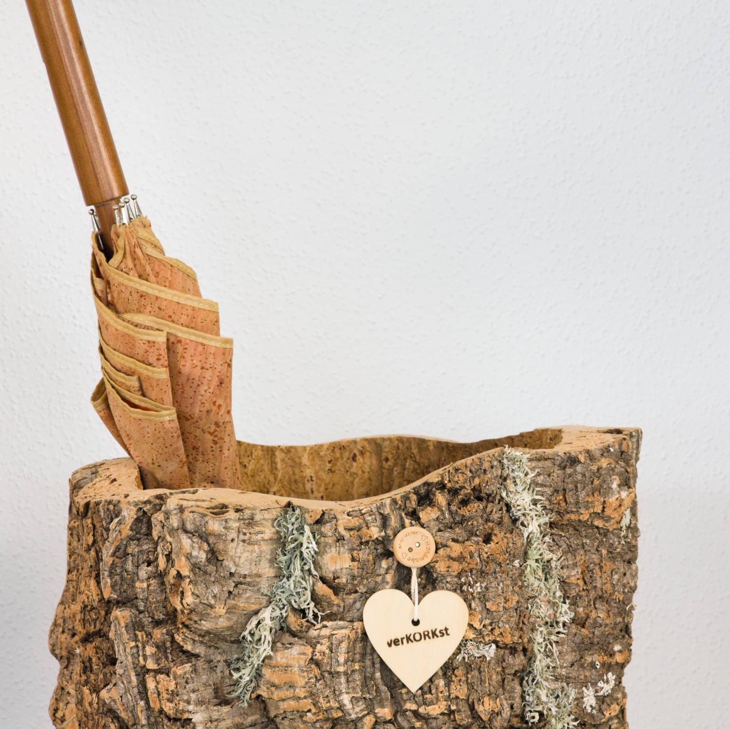 Die handgefertigte Schirmaufbewahrung sorgt für natürliche Atmosphäre in Ihrem Eingangsbereich oder im Office. Neben seiner Schönheit ist Kork auch ein unfassbar strapazierbares Material. Er ist feuerfest und wasserabweisend, leicht und dadurch sehr handlich.