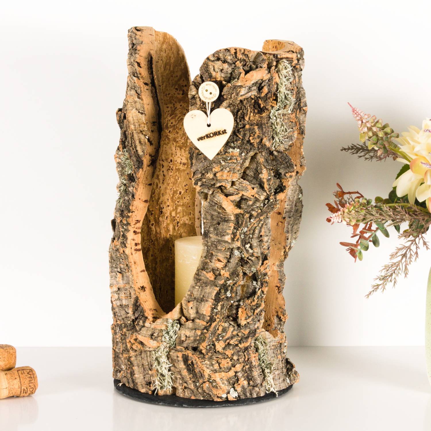 Während die hohen Stehlampen über eine E27-Fassung verfügen, wird bei den Tischlampen eine wasserdichte LED RGB mit Akku und Funk-Fernbedienung beigelegt. Somit lässt sich eine verKORKst Premium Tischlampe ruckzuck in ein Windlicht für Kerzen verwandeln.